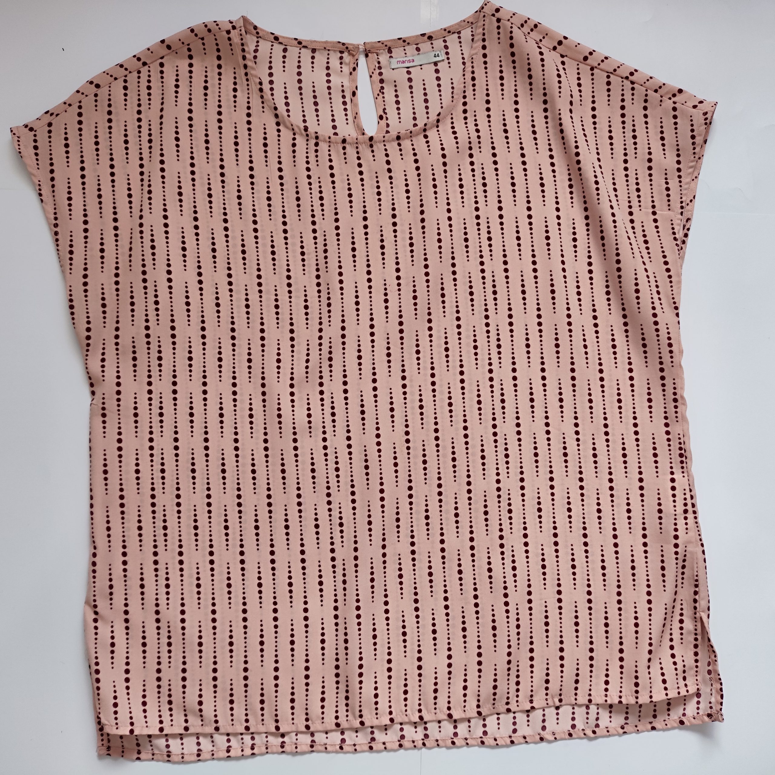 Detalhes que amamos: Cor: Rosa blush com poás vinho; Tecido: Leve e fluido, com toque acetinado; Modelagem: Reta e soltinha, valoriza todos os tipos de corpo; Destaques: Recorte com botão nas costas e estampa elegante; Tamanho: 44.